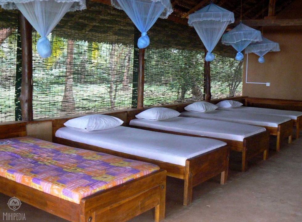 I was not expecting this and was pleasantly surprised at the vastness of the Camp. A large ‘pavilion’ is the dining/indoor area under a cadjan thatched roof and is ideal to sit around and read, play board games or simply stretch out and relax. Leading off along paved walkways, is a long dormitory styled cadjan sleeping area. Ten single beds lay side by side with individual mosquito nest. Reminiscent of midnight feasts and frivolous bedtime chatter. Attached is a double -bed room for anyone who want some privacy. And unlike many places, the pillows are great! On a warm night, the tats can be rolled up to let in a cooling breeze which will also heighten the exciting sounds of the nocturnal creatures. Perfect!