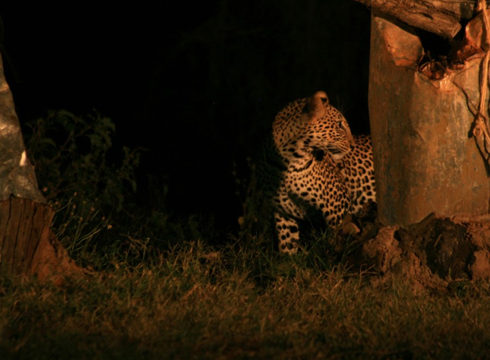 Our camp for the night is the Ngulia Safari Lodge. The balcony of our room overlooks a wide expanse of wilderness and we could see zebra, gazelle, and elephants grazing below. Across from the restaurant is a wide terrace cum viewing point overlooking a massive waterhole about 20 yards away. To our amazement, a herd of about 30 elephants, led by a massive matriarch arrives at this waterhole. A few minutes later we spot a couple of leopards edging their way to the waterhole waiting for their opportunity to get a drink of water.