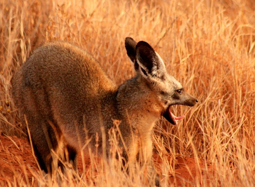 Having left Alphy and James behind in Nairobi, we are joined by our new driver, the staid Julius, and make our way to Tsavo East which covers an area of 13,747 km and is situated 1388 ft above sea level. Although this Park is not as beautiful as the Maasai Mara, it still holds enormous opportunity to spot game. Our luck continues as we come across large herds of dust-red elephants in this open savannah. These enormous pachyderms are covered in fine red dust that makes them distinctly different. We also spot Water Buck, Lesser Kudu, Maasai Giraffe and herds of Grants Zebras and the rare sighting of a couple of Bat-eared Foxes. But as is expected, it is the sightings of the Cheetah and the Lions that excite us most. Solitary lions sleep soundly, unperturbed by our proximity whilst a couple of females search the landscape for a potential kill.
