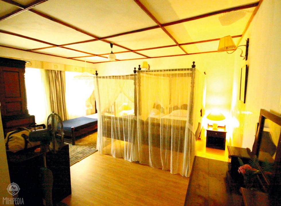 Cranford Villa is well over 75 years old, and yet, the beauty of its past architecture is intact despite some renovations done within. A flight of stone steps lead us up to a wide colonial styled verandah. On one corner is a perfectly restored old crock that is a collector’s delight. The large dining cum sitting area located inside has a quaint fireplace with more antique collectibles like old gramophones, telephones, hat racks and a collection of books and furniture. Like all estate bungalows, the floors are covered with worn out carpets that lend to its ambiance.