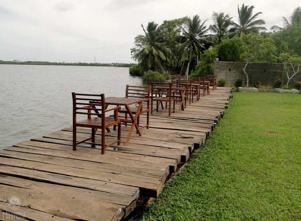 The waters of the Negombo Lagoon lap impatiently along the sides of the broad wooden deck that borders the garden of the Amagi Lagoon Resort and Spa. A kayak and boat tethered to the pier bob restlessly on the waters. The wind is picking up and the sky darkens as the rains approach from the far end of the lagoon. The sight across the waters is eerie, yet fascinating.