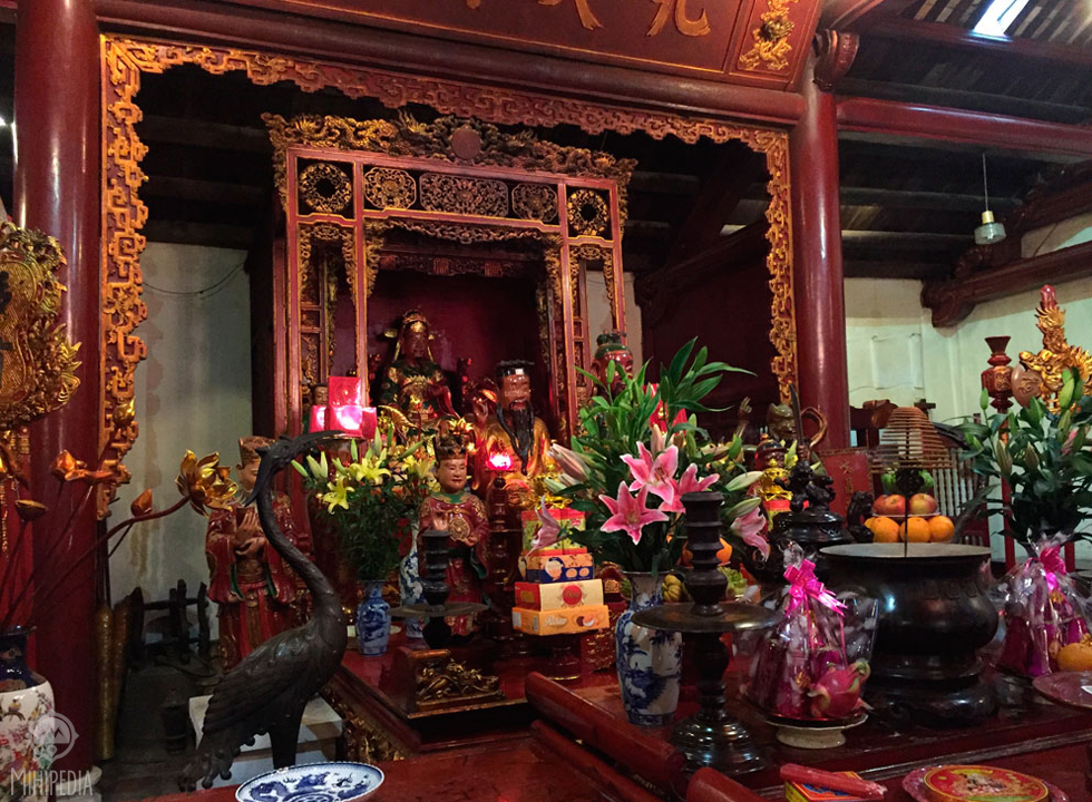 We walk along a wooden red bridge known as the Huc Bridge (Morning Sunlight Bridge) to the Jade Island where the Temple of the Jade Mountain (Ngoc Son Temple) lies. Erected in the 18th century, this temple was built to honour a 13th century military leader Tran Hung Dao who fought against the Yuan Dynasty, the scholar Van Xuong, and Confucian master Nguyen Van Sieu.