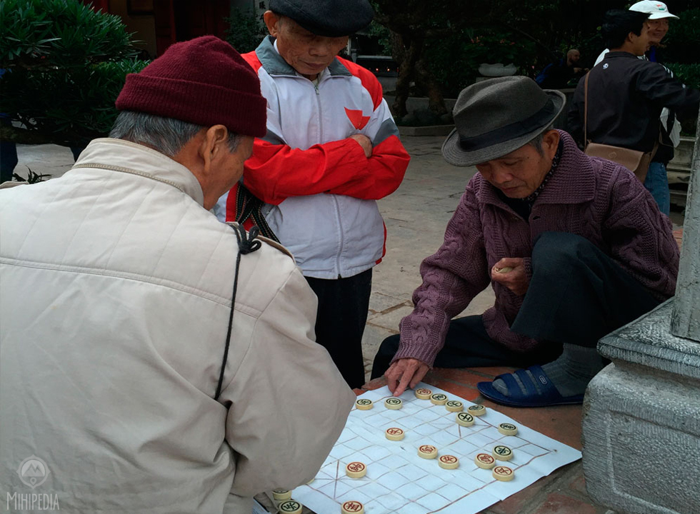 I sit awhile in the garden overlooking the Lake amidst impressive bonsai plants and watch two aged Vietnamese men play a game of ‘Xiangqi’, also known as Chinese chess. Little by little a crowd of onlookers gather around these two strategists as they try to outwit each other.