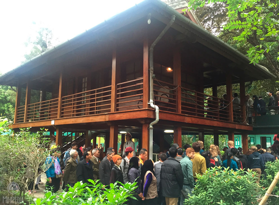 The wooden house has two floors. The ground floor was used as a meeting place, consisting of 12 chairs around a large table. The upstairs has two rooms: his study and bedroom. There is a bookshelf used as a wattle between his study room and bedroom. The bottom shelf has the small typewriter he used. His bedroom has a single wooden bed, a small blanket, a rush mat, a fan made of palm leaves and a bottle of water. Visitors can see a cotton bonnet he used to wear when alive. The books he was reading are left on the table. Vietnam’s beloved president lived here from 1958 until he passed away in 1969 aged 79.
