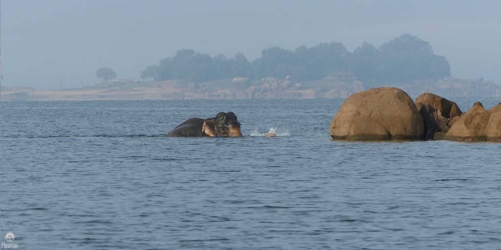 It’s six o’clock in the morning and I’m on my way to the Park Office (located 23 kms from the bungalow) to get a ticket for a boat safari on the famous Senanayake Samudraya. My boatman and tracker are already waiting at the bund and soon we are off. The morning is misty and the air is clean and crisp. The water is clear and still, and breaks into slight waves as our boat pushes forward.