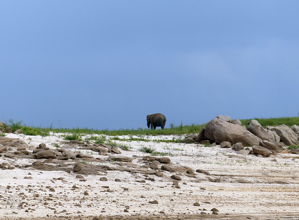 Suddenly, the tracker points ahead at a lone elephant swimming in the water. His upraised trunk blows water into the air and his huge body gently bobs up and down like a Loch Ness Monster, as he slowly makes his way from one island to the other. He hears us yet continues on his way until he makes landfall, and then displays petulance by stamping his feet and blowing sand and dust into the air! Elephants swimming across from these islands is one of the highlights of the Gal Oya National Park and quite a rare, yet amazing sighting.