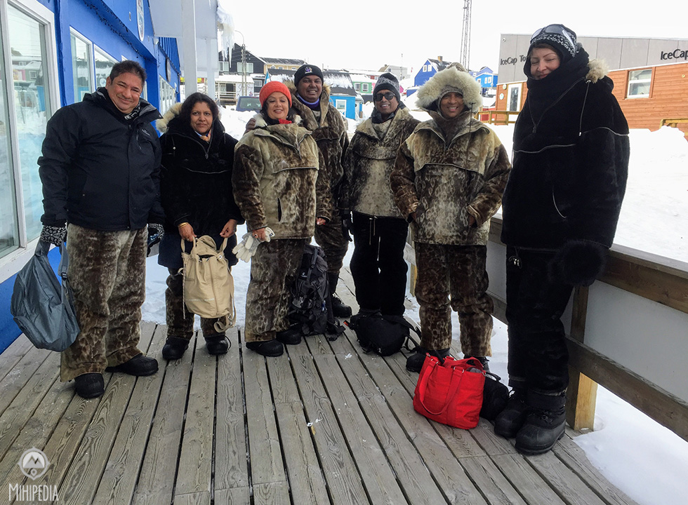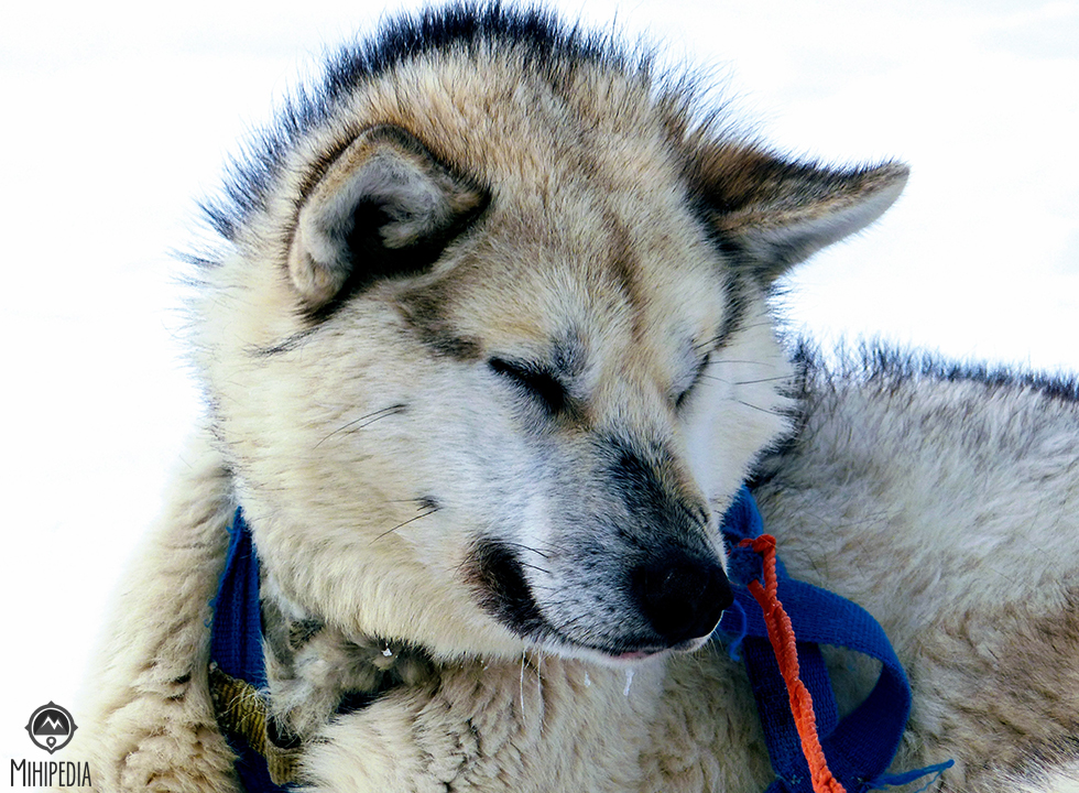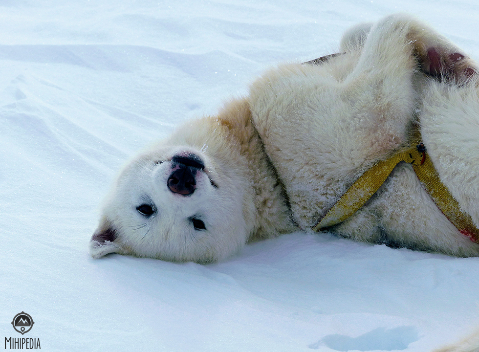 The outside temperature is -20C. And I am rugged up in the three required layers – thermals from top to toe, down jacket and windproof/waterproof jacket and pants. But prior to setting off on our adventure, we put on another layer of sealskin from top to toe. I now know what a turkey would feel like at Christmas time but I’m warm.