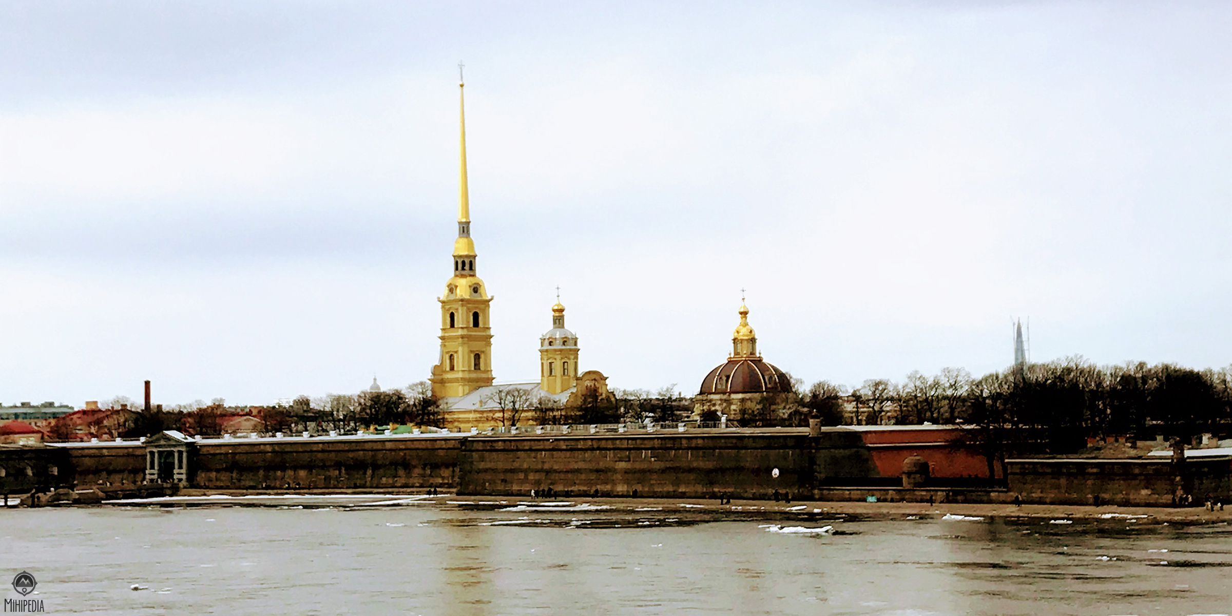 I enter through a long wooden bridge into the stately gardens, which are surrounded by the fortifications. Walking along this gives me a 180-degree view of St. Petersburg across the Neva River and the Admiralty Embankment on the other side of this river.