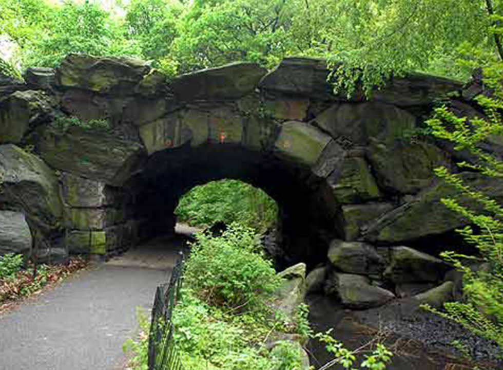 The Huddlestone Arch, built in 1866 and designed by Calvert Vaux, is held together by little more than gravity’s pull; the stones, which weigh many tons, exert pressure and keep the structure in place.