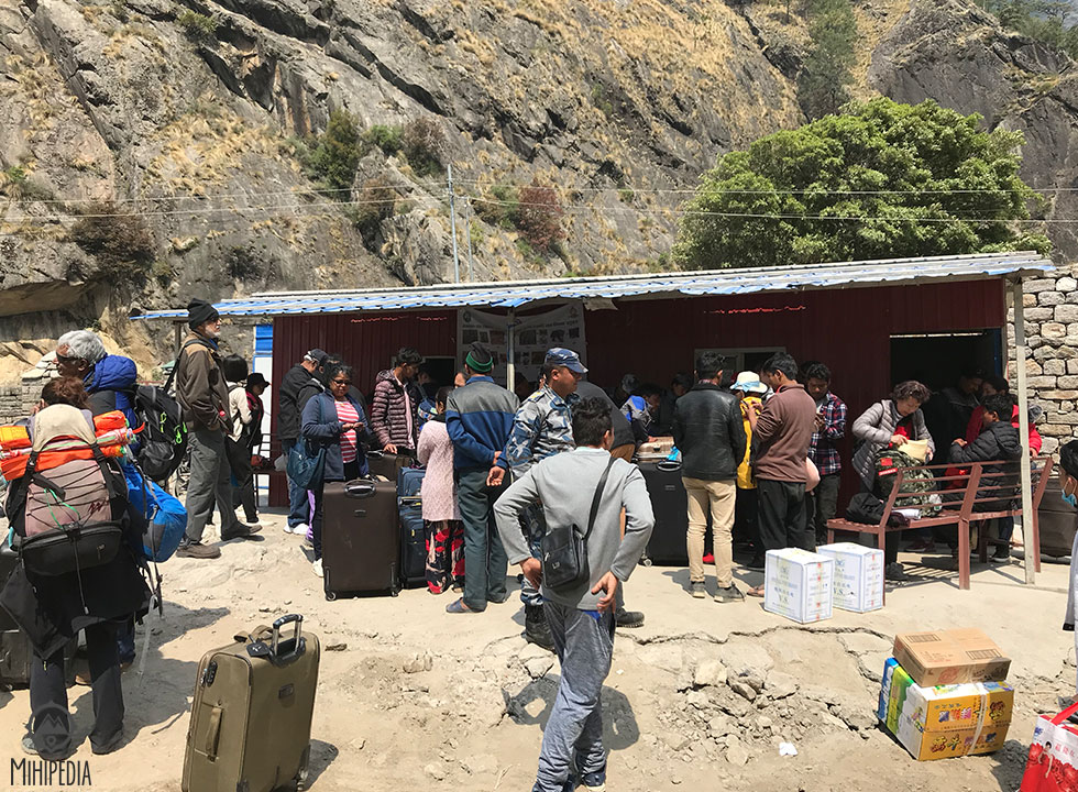 Outside this customs building is (about) a 50m stretch of no-man’s land. We drag our luggage through this dusty path to the Nepali baggage check area.