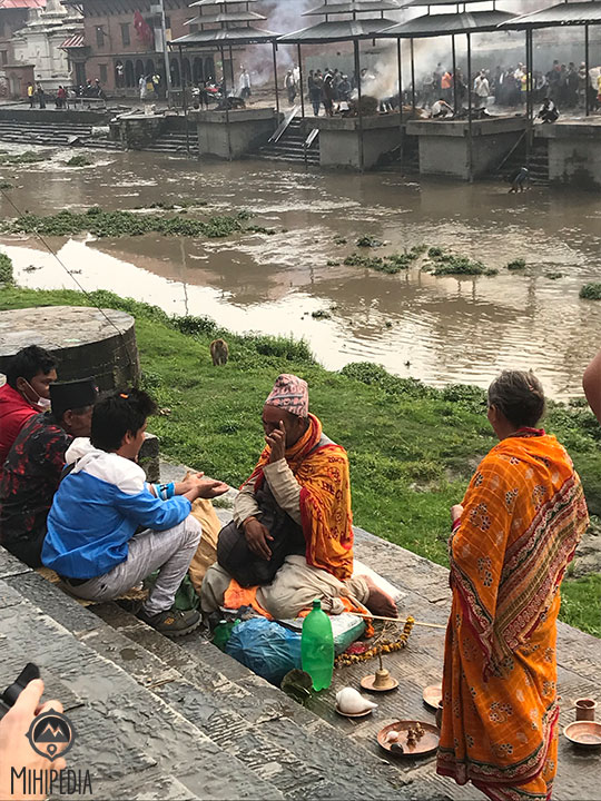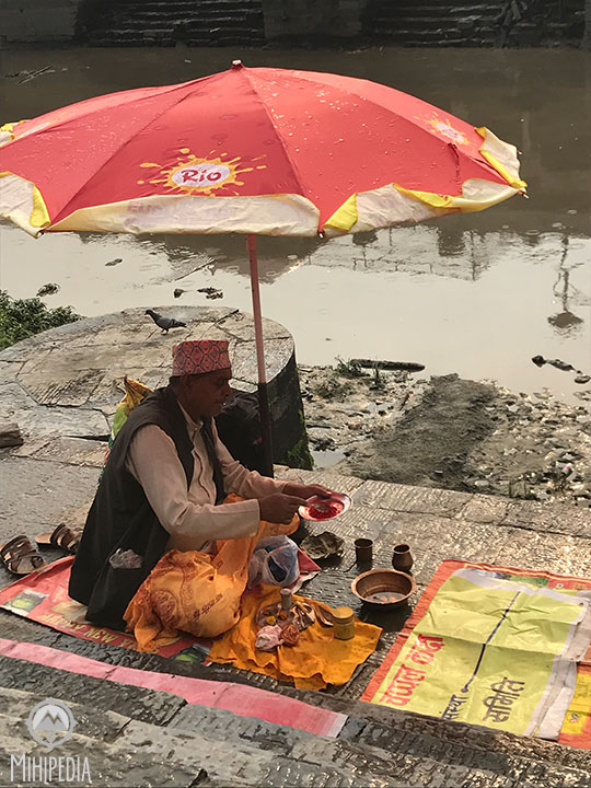 The rains just a while ago has left puddles along the cobbled path. I walk down to the side of the Bagmati River. This holy river is a special place for Hindus and the surrounding temples are dedicated to several Hindu and Buddhist deities. The importance of Bagmati also lies in the fact that Hindus are cremated on the banks of this holy river which flows directly to the Ganges River in India. According to the Nepalese Hindu tradition, the dead body must be dipped three times into the Bagmati River before cremation, so that the reincarnation cycle may be ended. The chief mourner (usually the first son) who lights the funeral pyre must take a holy river-water bath immediately after cremation. Many relatives who join the funeral procession also take a bath in the Bagmati River or sprinkle the holy water on their bodies at the end of cremation.