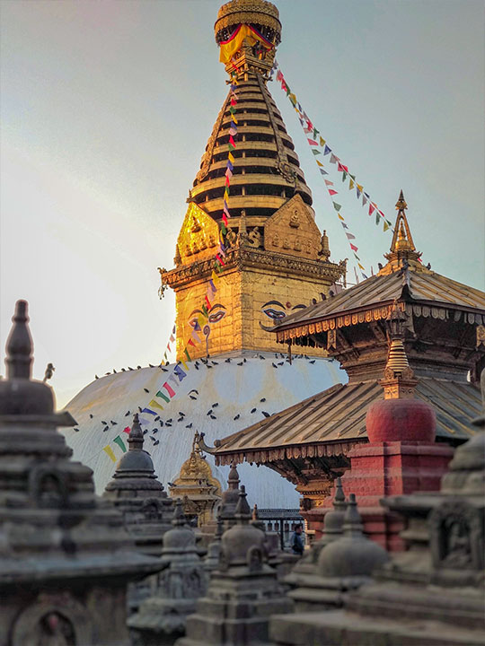 Located on a hillock, Swayambhunath is one of the holiest and oldest Buddhist stupas in Nepal. It is said to have evolved spontaneously when the valley was created out of a primordial lake more than 2,000 years ago. Legend has it that Swayambhunath was created out of a lotus flower that bloomed in the middle of this lake that once spread across the Kathmandu Valley.