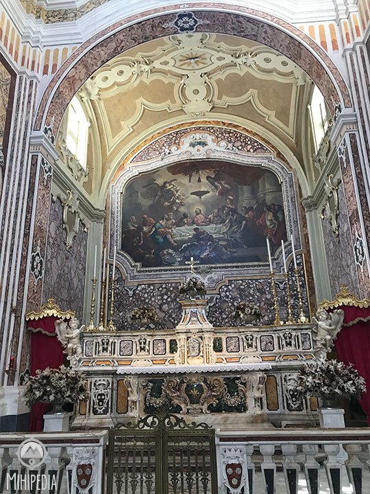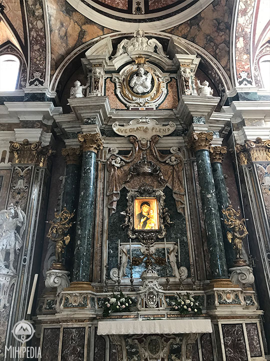 According to an interesting story, after work began on this cathedral in 1107, it was supposedly halted for the lack of roof beams. A miracle then occurred in 1117 when a raft carrying an icon of the Madonna drifted into the harbour. The raft beams were used to construct the roof. Subsequently, after various sieges, work was completed in 1772 and the cathedral was declared a minor basilica in 1921.