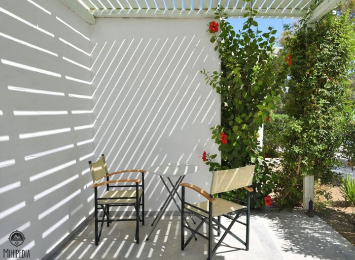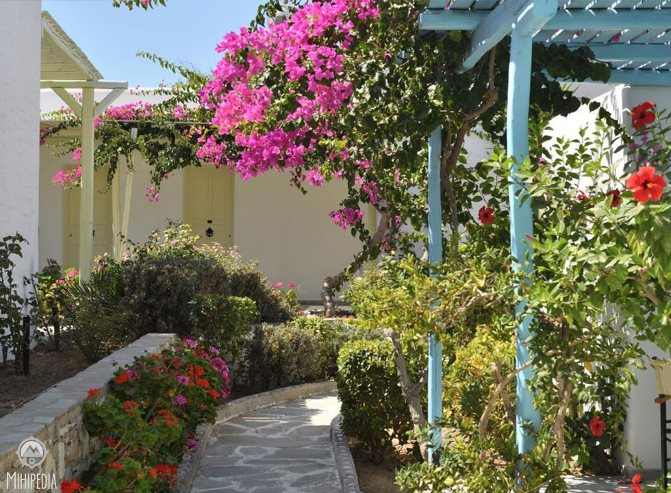 The resort styled accommodation is an abundance of bougainvillea, white-washed buildings, and bordered by the most amazing cerulean Aegean Sea.