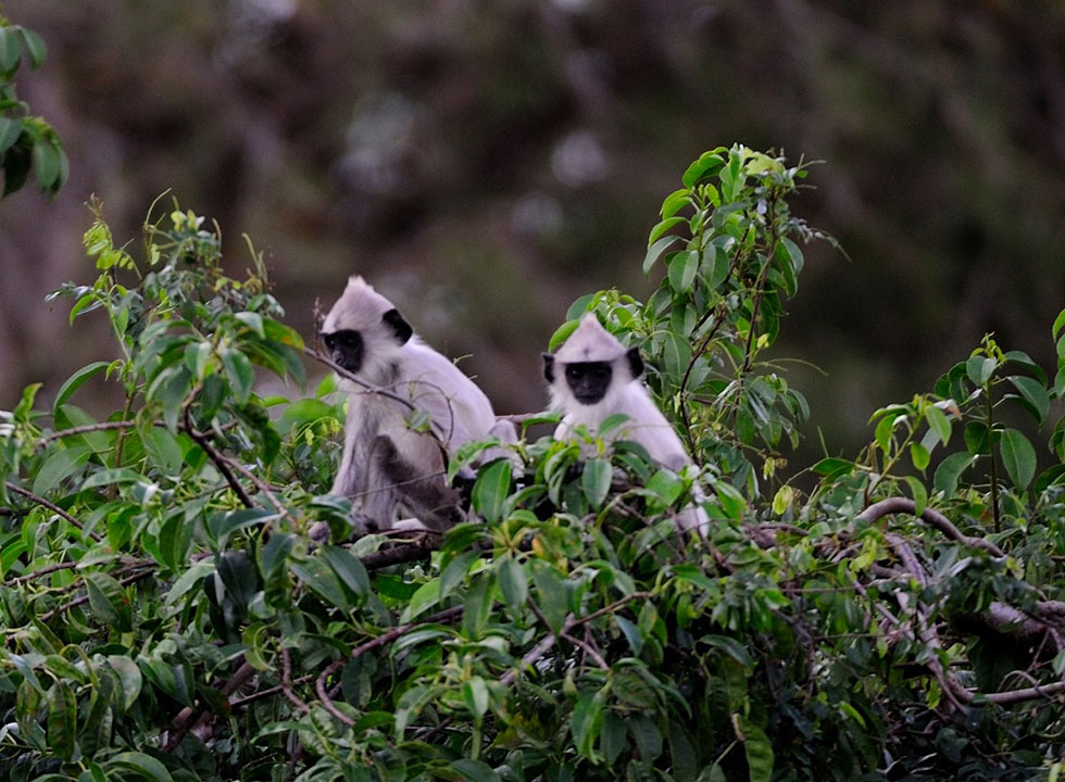 Meanwhile troops of grey langur and torque monkeys make their presence felt by shaking down branches and creating a cacophony up in the treetops. Giant rock squirrel dart from tree to tree, a lizard monitor pops out of its hole in the tree to sunbathe, and life in the jungle carries on as usual.
