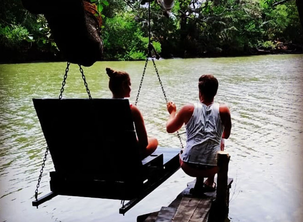 Along the river bank, are perfectly placed seating that allows for privacy, great views, comfort, and solitude. There is a hammock swinging over the river, a swing seat that skims the water, a pier to launch the kayak from, and bathing spots to soothe the soul at the end of the day.
