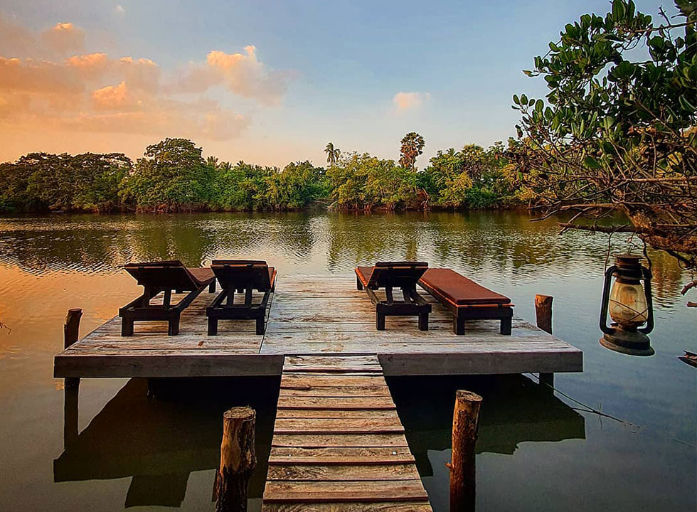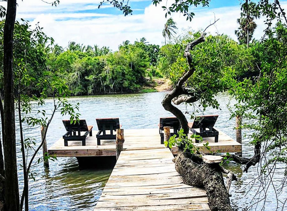 The Lodge is set on the banks of the Uppu Aru (salt river) which is the backwaters (that’s where the name came from!) of the Kala Oya that gently flows in to the estuary of the Dutch Bay.