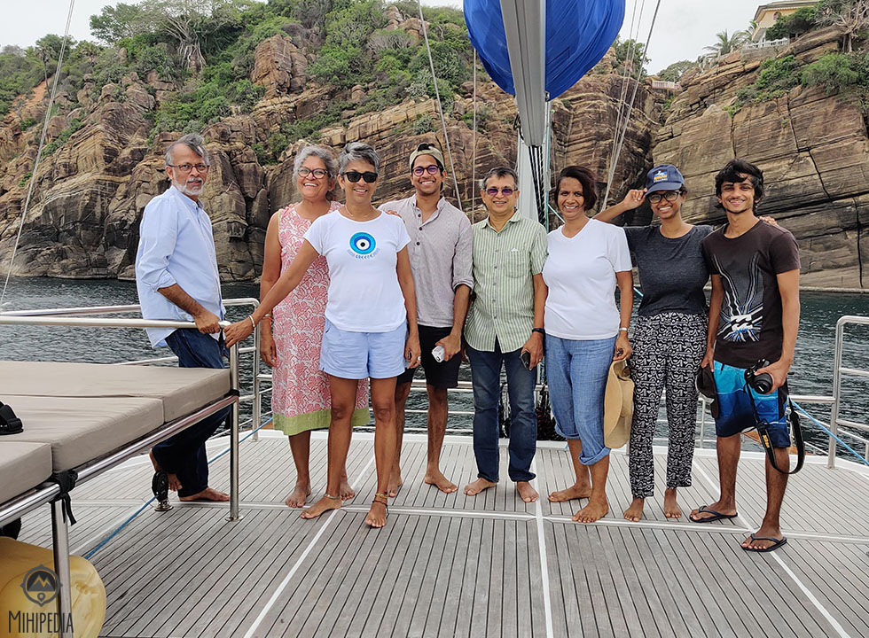 We are anchored out at sea, at the foot of the Koneshwaran temple in Trincomalee. I am onboard the Emerald CeyCat 53, a custom built, six-cabin catamaran belonging to Sail Lanka. This is just day one of our three day cruise along Sri Lanka’s renowned east coast.