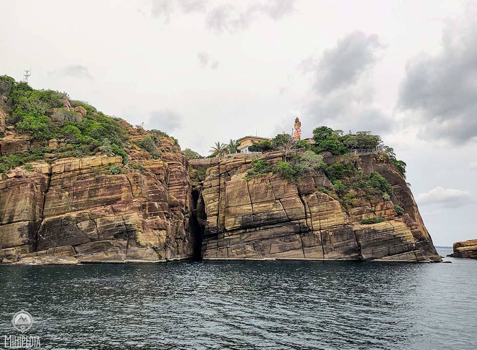 From this point we see Ravana’s Cleft. According to the epic tale Ramayana, Ravana, an ancient and mythical ruler of Sri Lanka, and his mother worshipped at a shrine of Shiva at Koneswaran temple. However, when his mother fell ill and was unable to visit the temple, Ravana attempted to lift the temple and take it to her. But Lord Shiva disapproved of this and struck Ravana’s sword, which went spinning into the sea, smiting the rock in half.