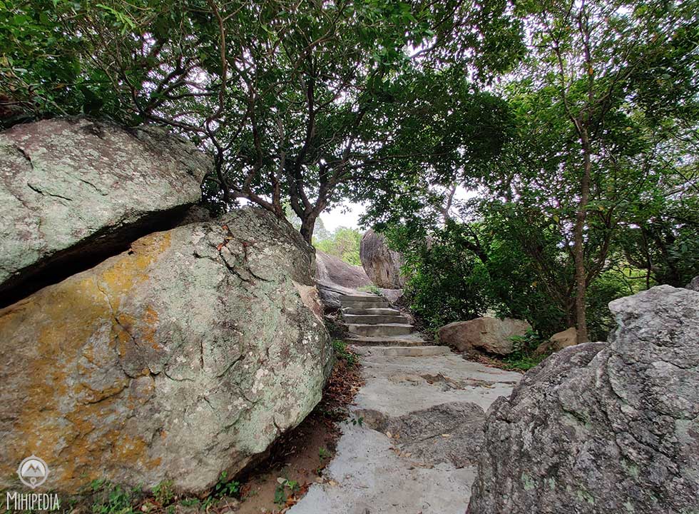 At the very top is the unique, well-preserved cylindrical dagoba, the only one of its kind to be found in Sri Lanka today. Scholars say that this could be the only dagoba built according to the Dhamek Stupa in Sarnath in India.