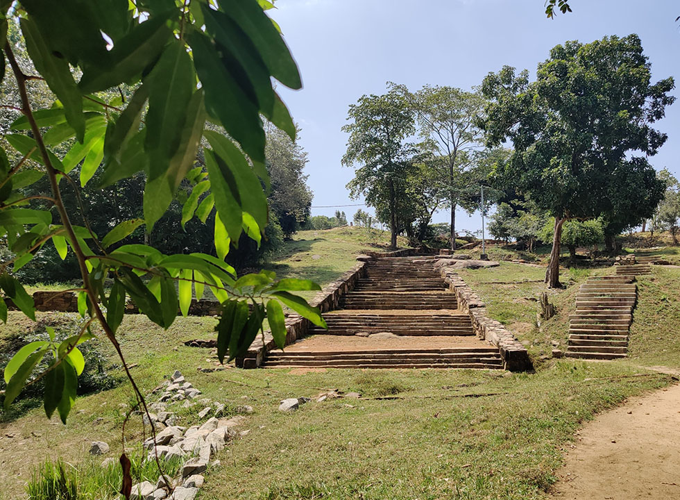 - Walkway connecting the incomplete Buddhist statue to the Stupa platform in which two Stupas are located