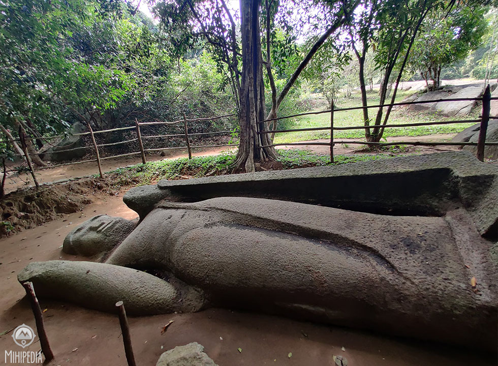 The other is this unfinished Buddha statue carved from a 5-meter block of stone. Lacking finer detail, the lines are straight and at right angles to each other which archeologists believe is because this was done by apprentice sculptors leaving it to be perfected by master sculptors. But for whatever reason, the statue remains unfinished.