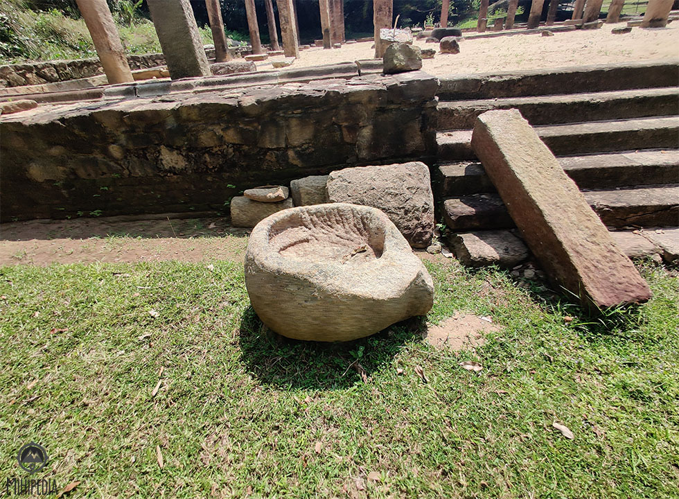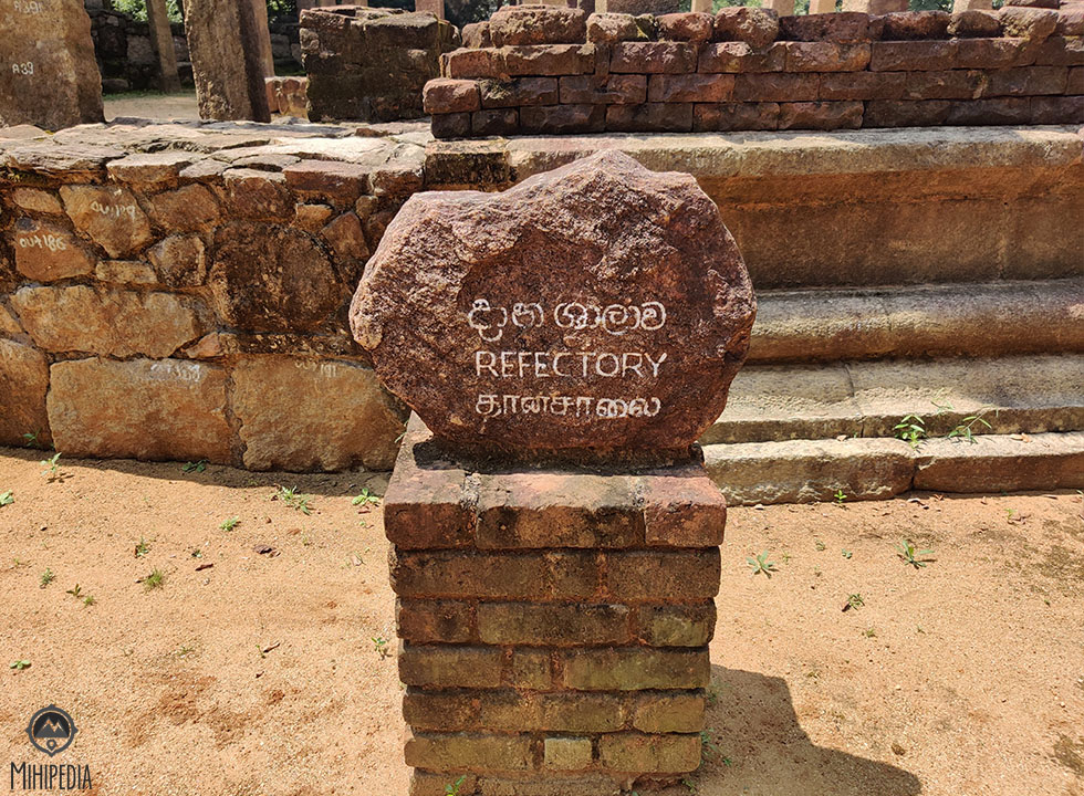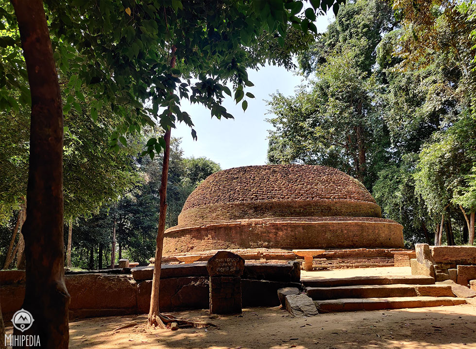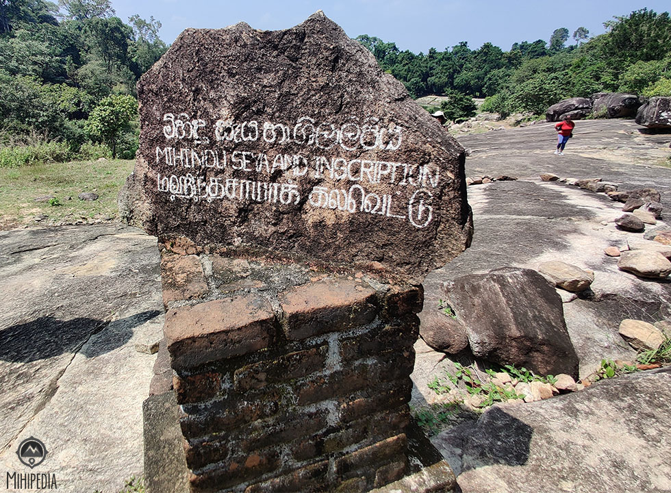 We find a stone inscription referring to Arahath Mahinda Thero, the Buddhist monk attributed to bringing Buddhism to Sri Lanka. In fact it is believed that his ashes, along with his disciple Itthiya Thera (later called Idika) were enshrined in this stupa.