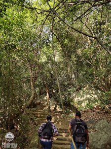 The sign says we have a 1400m climb along the East stairway. The climb is rugged, sometimes steep and craggy, but thankfully, the thick tree canopy shades us from the relentless sun.