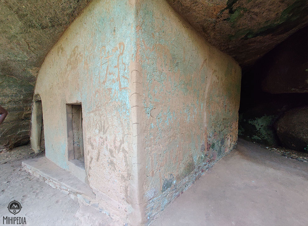 - Specially constructed stone entrance way to a cave residence of meditation monk (may be the chief priest)