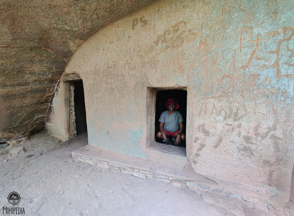 The cave with the stone door frame is intact and shows clever detail in masonry and craftsmanship.