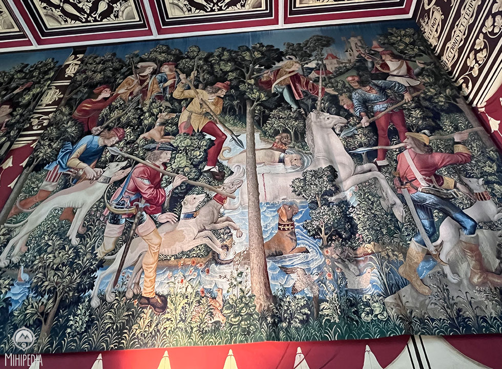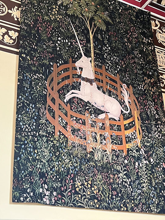 In the 1540s, James V and his wife, Mary of Guise (parents of Mary Queen of Scots) is said to have owned a large collection of intricate tapestries. According to the royal inventories, James V owned more than 100 tapestries depicting “the historie of the unicorne”. The Unicorn is the national animal of Scotland and is featured widely in many of Scotland’s iconic places. In a separate section of the Castle grounds, I watched the complete reconstruction of the ‘historie of the unicorne’ and the finite detail that goes into creating these masterpieces.