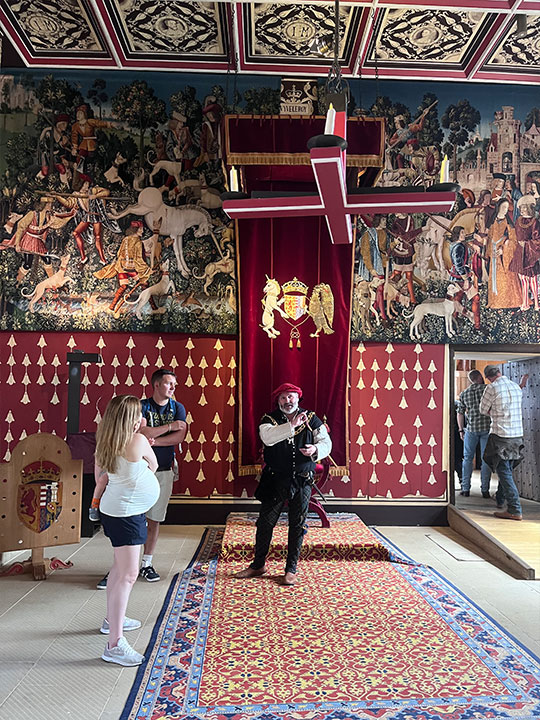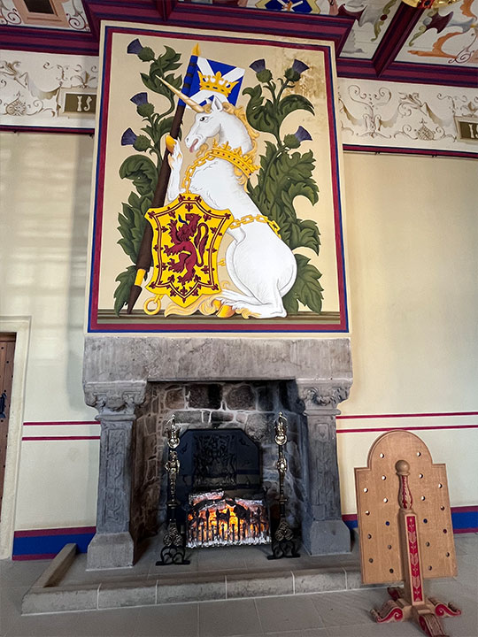 The Great Hall was medieval Scotland’s largest banqueting hall built for James IV in 1503 and was used for feasts, dances and pageants. It has four pairs of tall windows at the dais end, where the king and queen sat, and was heated by five large fireplaces. There are galleries for minstrels and trumpeters.