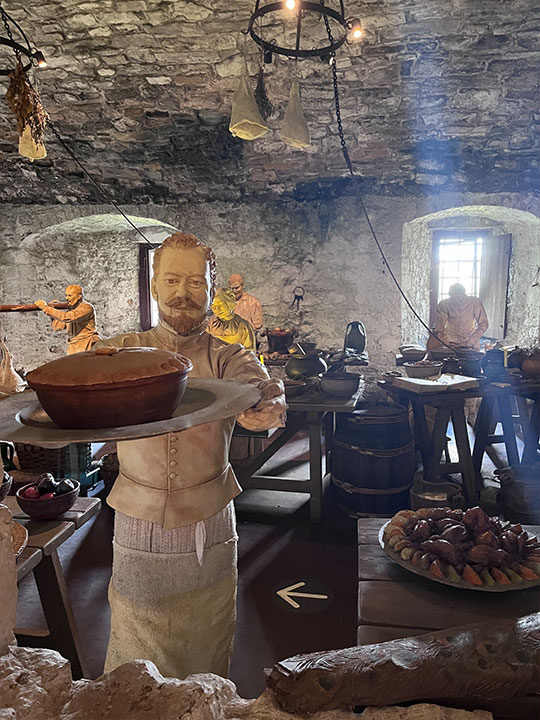 The Great Kitchens of the castle are an enactment of life-sized figures of what would have been when the King was in residence. I can almost feel the heat, the smells, the bustle as meals are prepped for a royal feast up in the Dining Hall.
