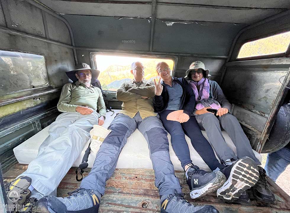 Our group of (now increased to) eight adventurers packs tightly into a Bolero jeep, some getting comfortable on mattresses laid out in the back, while the others clamber into the front seats of this rather unsteady vehicle.