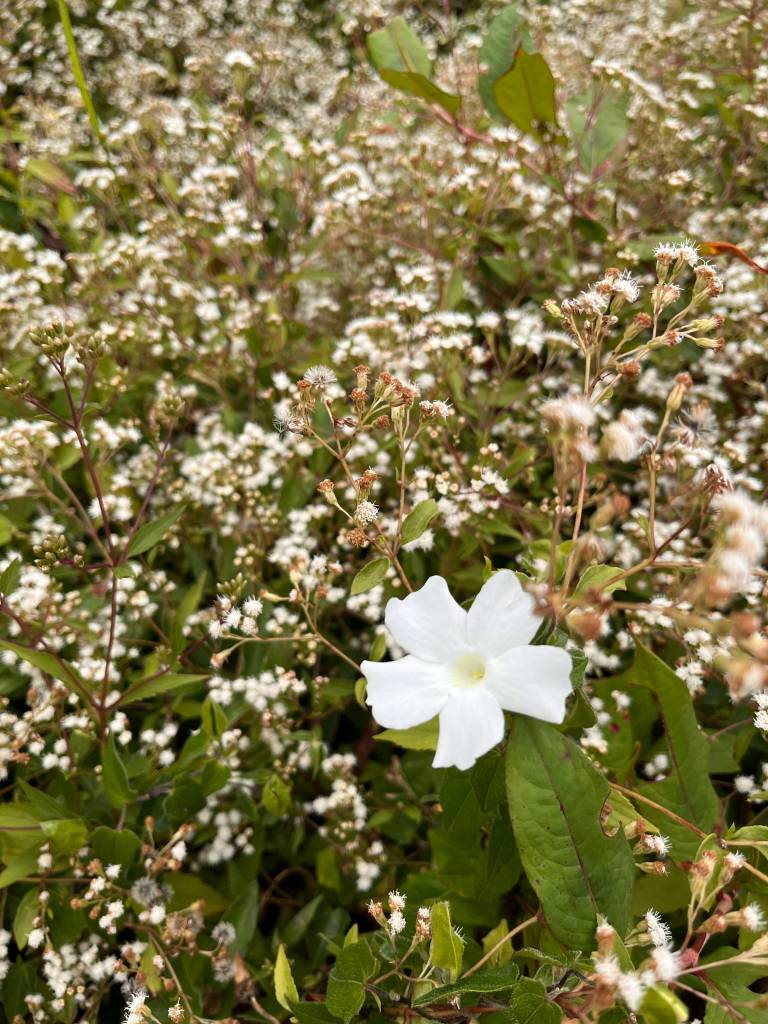 And much to our surprise and delight, we stumble upon a sprawling tea field enveloped in a sea of “mistflowers,” transforming the area into a spectacle reminiscent of a winter wonderland.