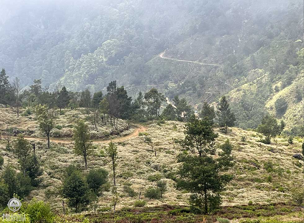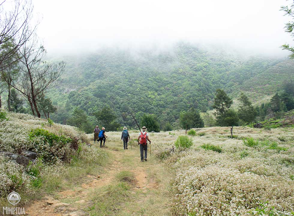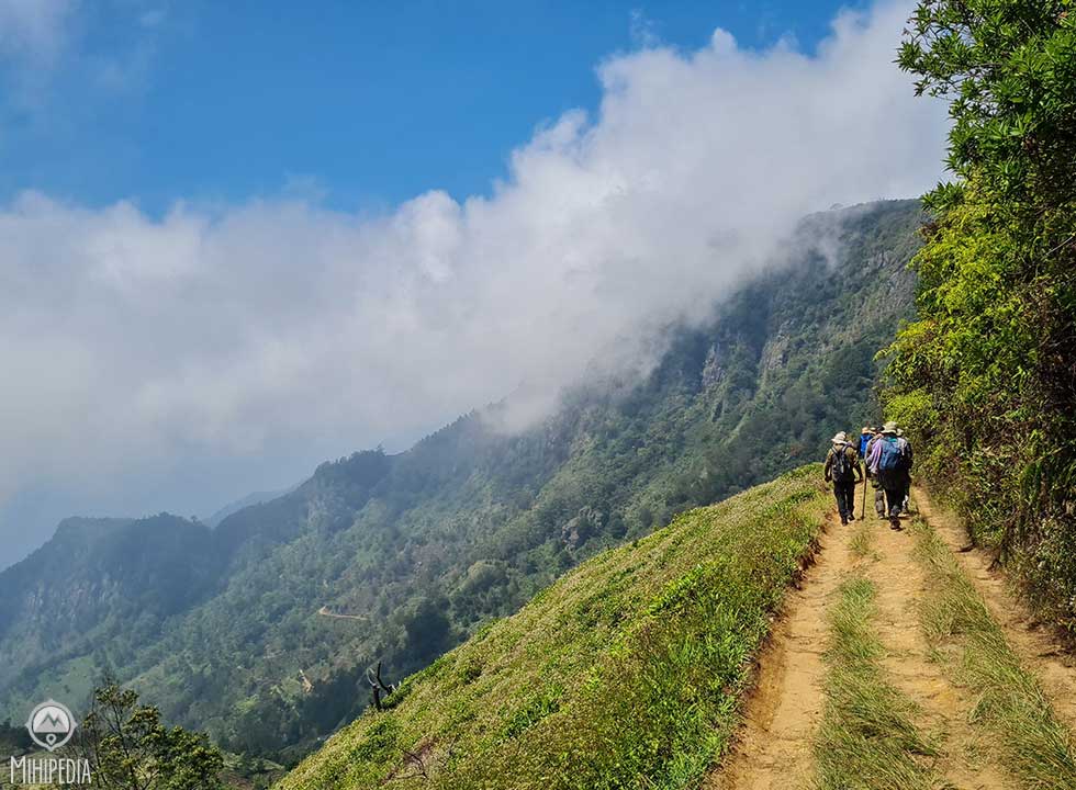 The trail gets more interesting from this point as we head down, skirting the top of the famed Devil’s Staircase, spanning from the Ohiya-Horton Plains road to a quaint village where a path traverses the mountain, leading to Udaweriya Valley. This stage of the trail is also known as the steepest downward descent along the Pekoe Trail. The scenery along this trail is pretty, with the path winding gracefully around the mountain.