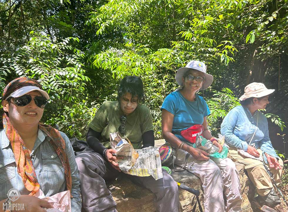 At 1104 meters above sea level, the summit of Manigala awaits, challenging us with its craggy rocks and slippery slopes. Guided by the seasoned wisdom of old Ekanayake, our impatient guide who we have nicknamed “NoBell” (for reasons known only to us), our group of five venture forth, embarking on a journey that will test our endurance and ignite our spirits.