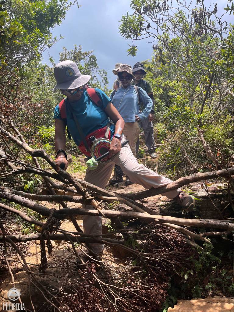 On this hot and humid day, the time on my Apple Watch reads 11.30 a.m as we reach the summit into a world of breathtaking panorama. We have climbed almost 2kms. From the Knuckles Mountain Range to the distant Sudugala, every peak and valley tells a story of ancient civilizations and untamed wilderness. And amidst the beauty, there is a sense of urgency, a reminder of the fragile ecosystems that call Manigala home.