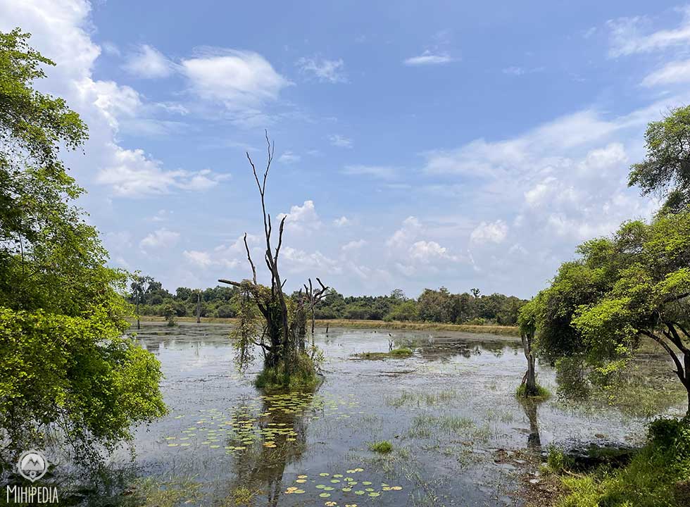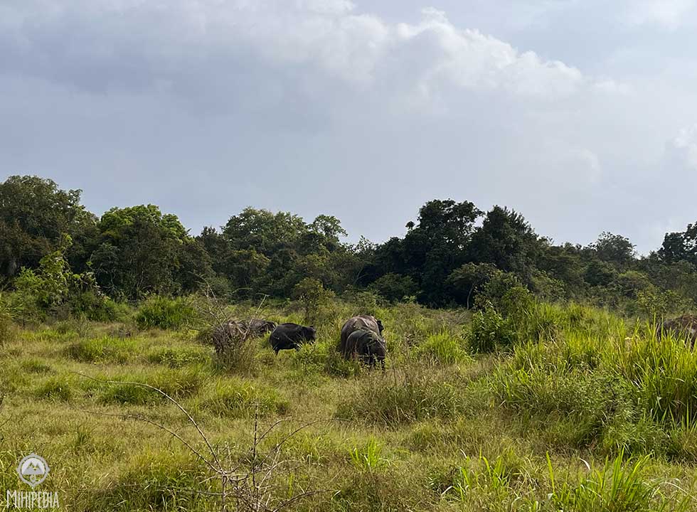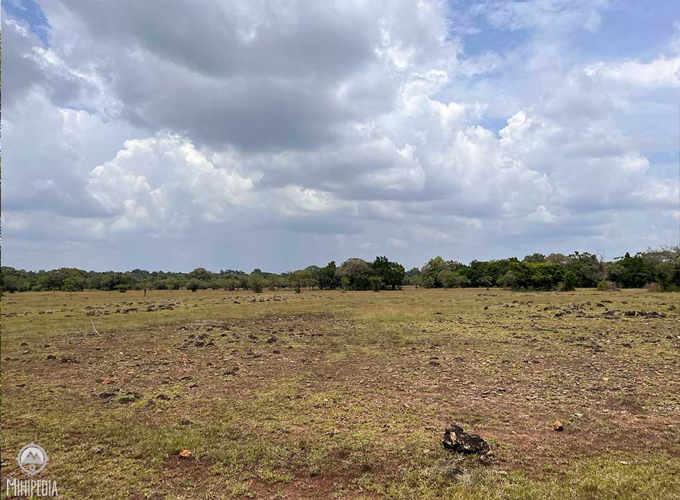 One of the park’s notable historical sites is Yudangana Pitiya, believed to have been the battleground where King Elara clashed with King Dutthagamani. This grassland, known as Kandauru Pitiya, is said to have served as the campsite for Dutthagamani’s army before the decisive battle. I see lots of small-sized rocks scattered across this site, resembling the remnants of an armory used for battle.