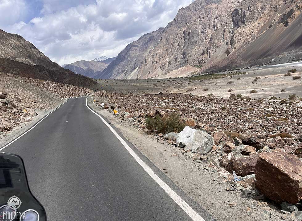 The beauty of the Nubra Valley unfolds with every turn—snow-capped peaks, deep valleys, and the sparkling Shyok River accompanying us on our journey. This has been the best road surface so far.