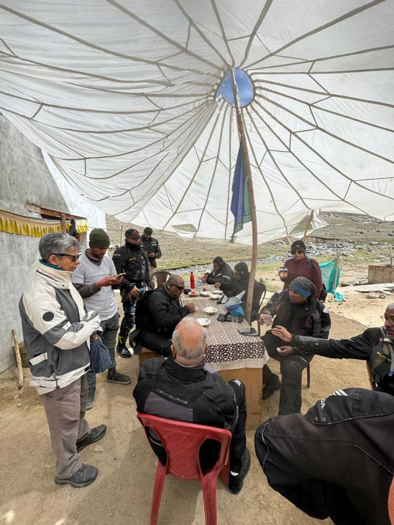 We endured nosebleeds and ice baths, altitude sickness, relentless headaches, the notorious Delhi Belly, sunburns, and frozen fingers. We rode through rugged terrain comprising sand, rocks, snow, ice, hail, wind, and rain. Some fell off bikes but got up stronger. We dodged near misses with fellow riders and erratic drivers, filled ourselves with many bowls of Maggi noodles and momos, slept in tents, and braved countless hours of hard seats. We inhaled clouds of dust and dirt along the way. We also polished off eight bottles of Old Monk! But, every challenge only fueled our determination and adventure!