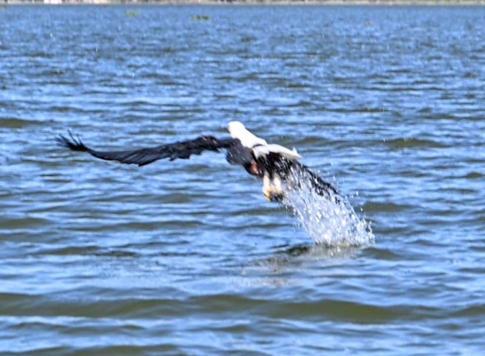 An eagle launched into the air—powerful wings slicing through the sky—and in a flash, it tucked and dove, talons extended. Time slowed. With a splash and a flutter, it surfaced with a fish in its grasp. The entire scene lasted seconds, but it left us breathless. Nature’s precision, on full display.