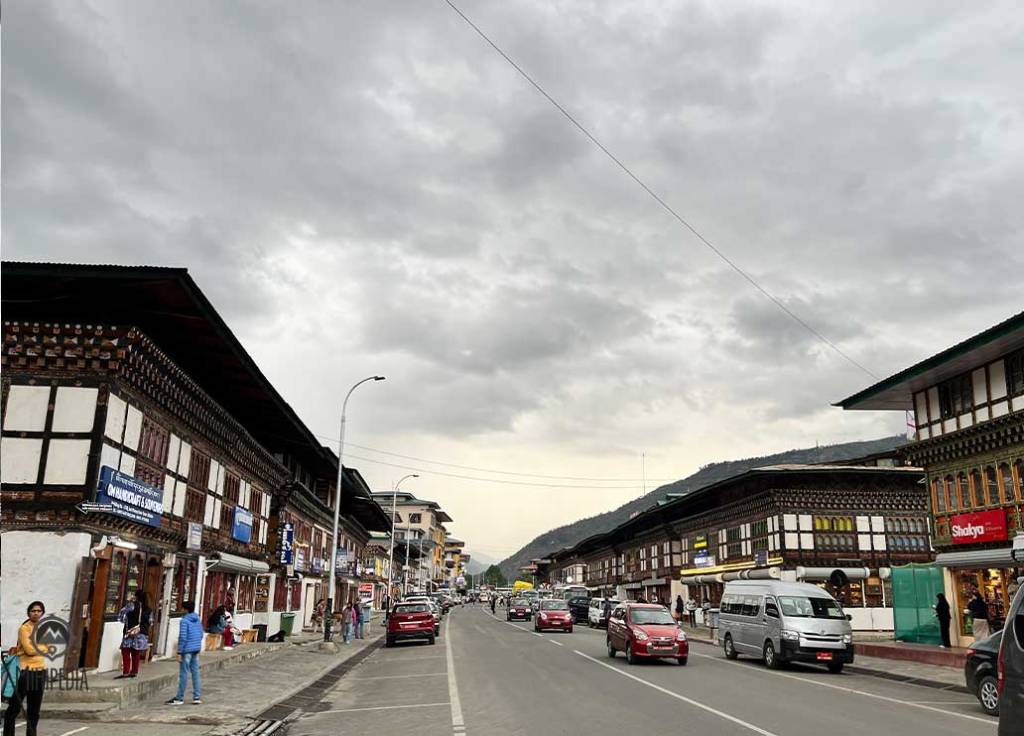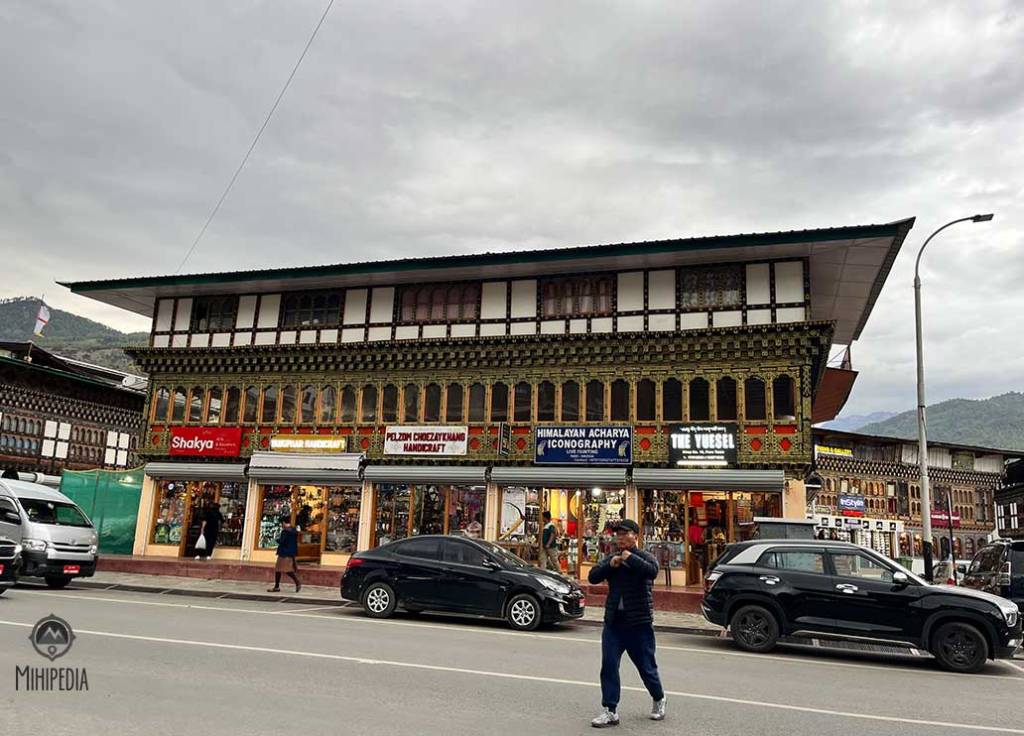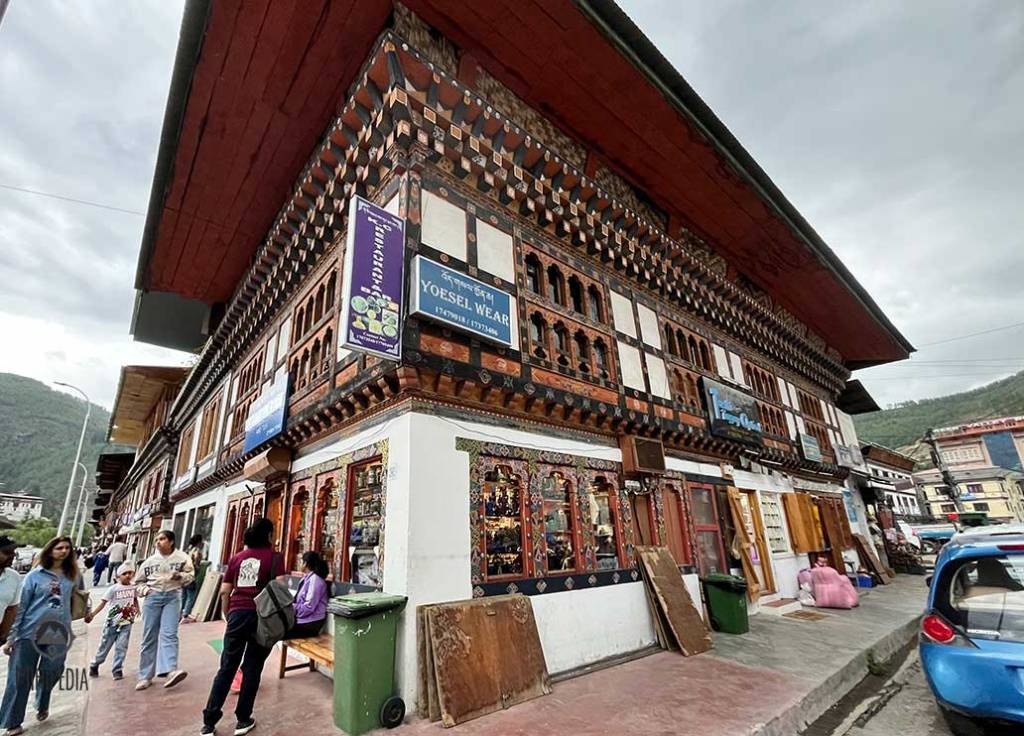 Driving through the Paro Valley, I was struck by how gentle everything felt. The landscape rolled out in tranquil layers—emerald rice fields, fluttering prayer flags, quiet temples tucked into hillsides. The roads were clean, the air even cleaner. No horns. No concrete chaos. Just a sense of order woven into nature. The main street is lined with two-story buildings painted in traditional Bhutanese style, the facades are adorned with elaborate woodwork, hand-painted cornices, and floral motifs in warm hues of ochre, maroon, and white. It feels more like an artist’s village than a commercial center.