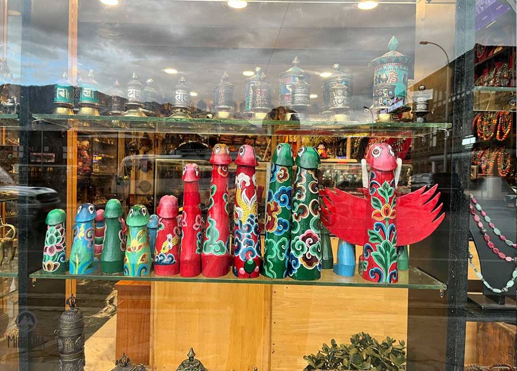 The street itself is clean and walkable, flanked by cozy cafes, handicraft shops, and general stores (all of which have the license to sell liquor, much to our delight!) that seem to double as community hubs. There’s no blaring signage or chain-store sameness—just wooden shopfronts with hand-lettered signs, prayer flags fluttering above them like blessings caught in the breeze.