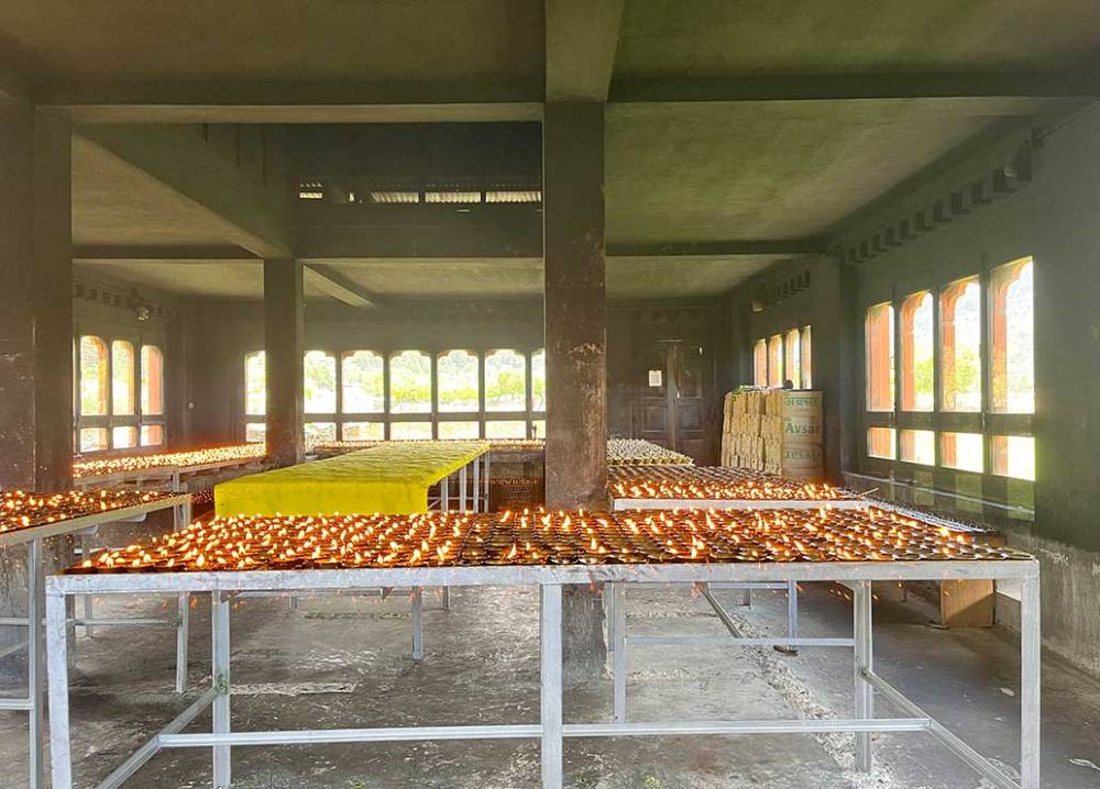 Though simple in structure, the temple held layers of age and energy. Faded murals of wrathful deities and dancing dakinis covered its inner walls. The altar was dark and cool, lit only by rows of butter lamps, their golden flames mirrored in the brass bowls of water offerings.