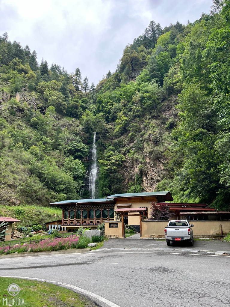 From Trongsa, the road rolled and dipped until we reached Willing Waterfalls—a hidden treasure. Tucked beneath mossy cliffs, the lodge and restaurant here sit beside a crashing cascade. We lunched on a wooden deck overlooking the waterfall, and a stunningly beautiful garden, savouring fresh trout, nutty red rice, and a fiery ezay that had us reaching for chilled Coke between tearful bites. The flavours, the rush of water, the crisp mountain air—it was Bhutan served on a plate.