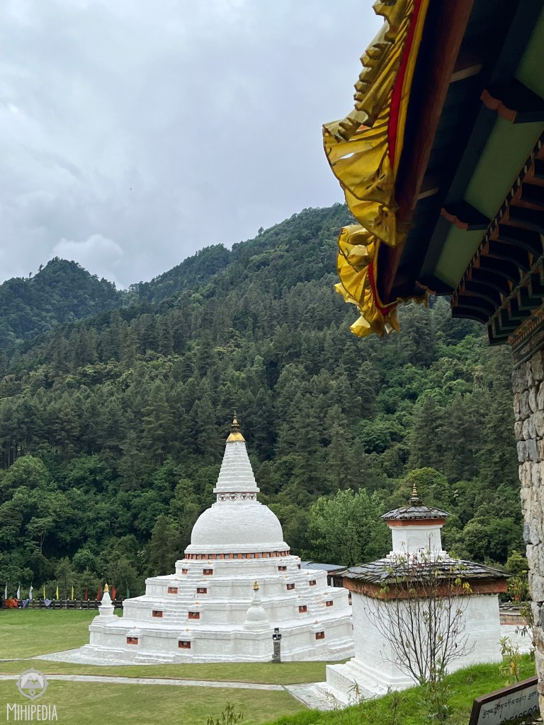 As we descended from Yotong La, the forest thickened once more—and then, like a vision from a folktale, it appeared: Chendebji Chorten.