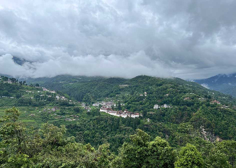 Descending from Pele La Pass, the landscape shifted again into lush valleys and terraced hillsides as we made our way to Trongsa.
