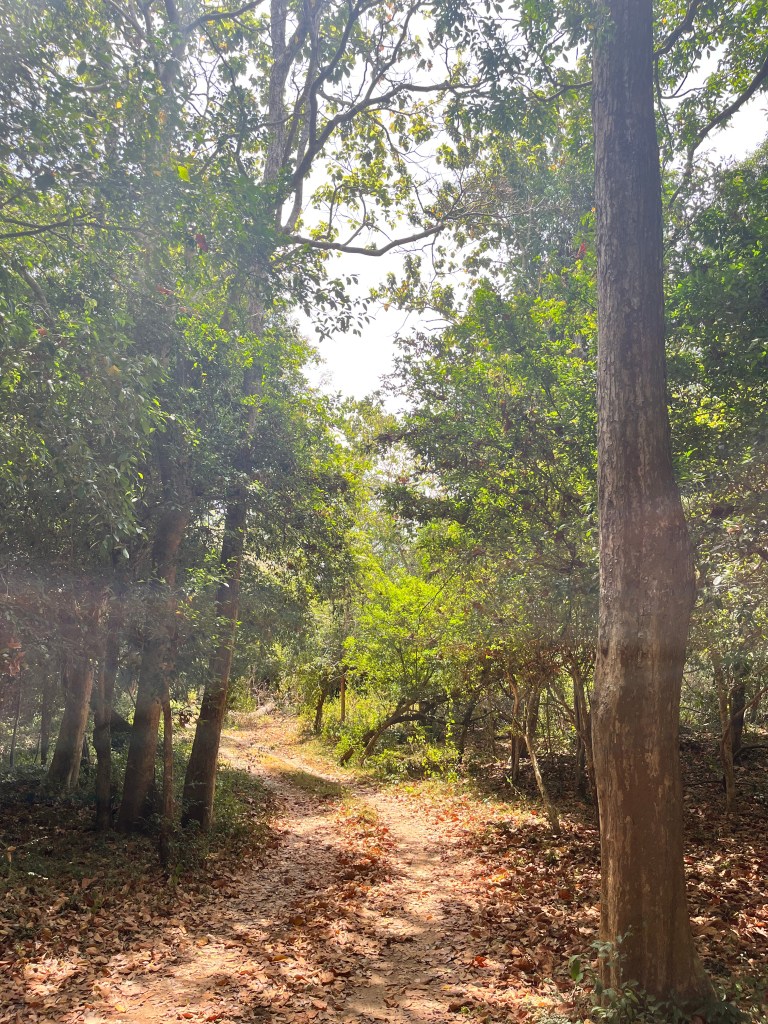 Monkeys stared down from above, spotted deer flicked their ears, and peacocks crossed dramatically like they owned the place. Errol maneuvered over roots and riverbeds like he’d done it blindfolded, while Kasun scanned the thickets with laser focus.