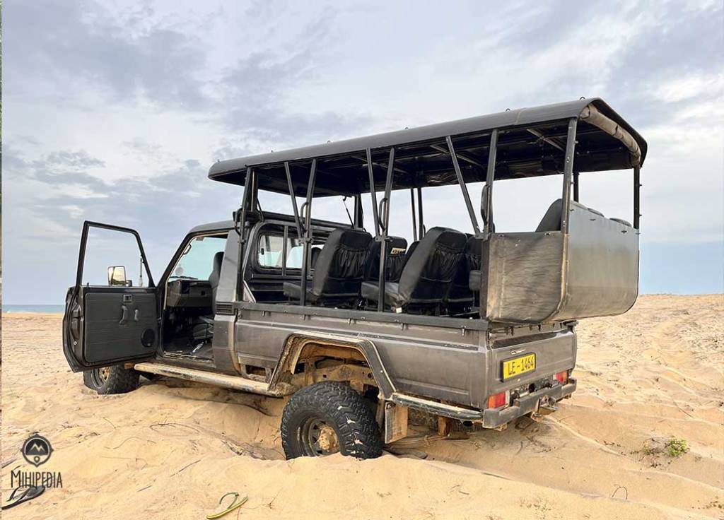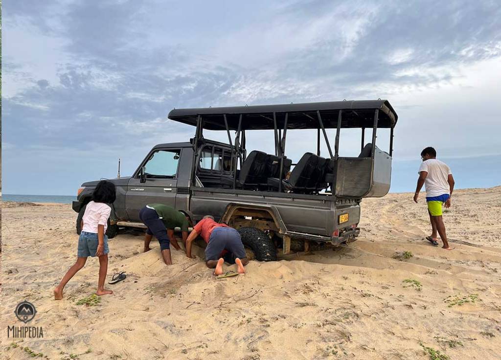 We drove out toward the sand dunes, that eerie stretch of Kumana where the landscape turns pale and wind-swept, more Sahara than Sri Lanka. The sun was low, the shadows long, when suddenly the jeep sank. Stuck in the sand.
